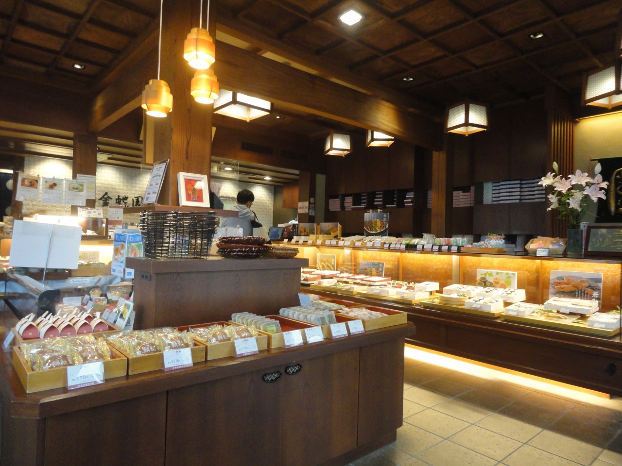大垣駅を出てすぐ、老舗の和菓子屋さんです。お店の外観も歴史を感じさせる雰囲気でした。店先で水まんじゅうが販売されていて、お客さんが並んでいたので、立ち寄ってみました。店内には、おまんじゅうや若鮎など、和洋いろんな種類のお菓子が並んでいて、お客さんがひっきりなしに訪れていました。店内でもいただけるということで、水まんじゅうの2個セットを注文。氷がたっぷりかかった水まんじゅうは、するっと食べられて、暑い夏に美味しかったです。