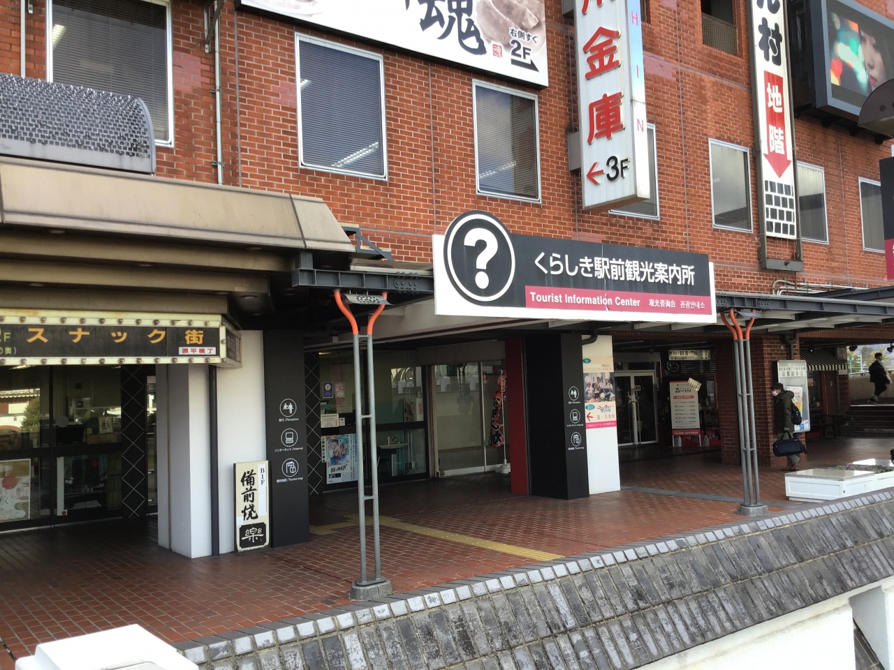 JR倉敷駅前にある観光案内所です。ここでは、倉敷の観光に関するパンフレットや資料がたくさん置いてあり、スタッフに色々と聞くことができます。また、倉敷美観地区まち歩きクーポンをここで購入することができます