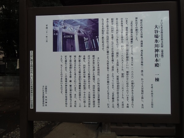 説明板によると、この辺りはかつて大谷場村と称し、氷川神社はその鎮守でした。