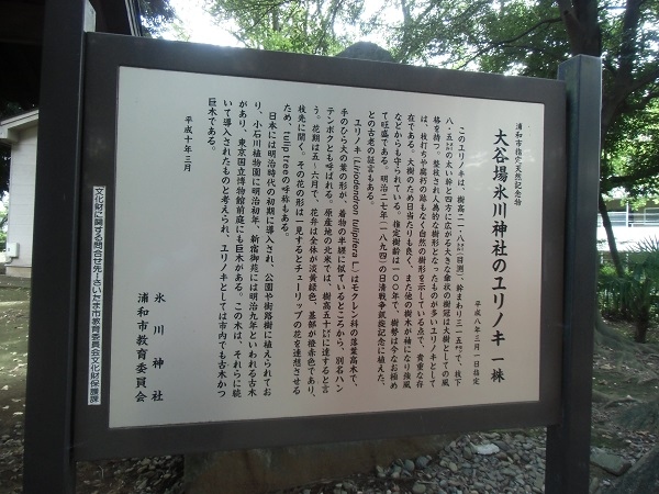 境内に聳える高さ21.8mのユリノキは市の天然記念物でとても目立っていました。