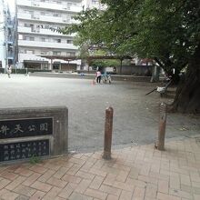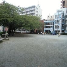 砂場と複合遊具が1つと広場だけの公園なのに、園児でいっぱい