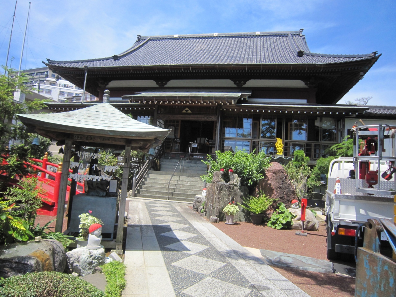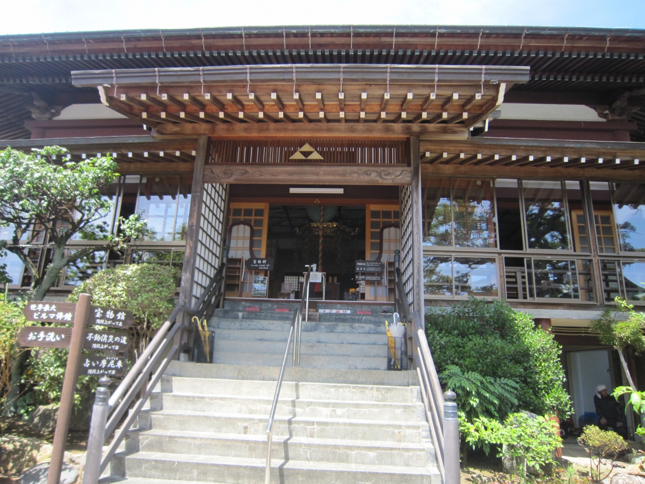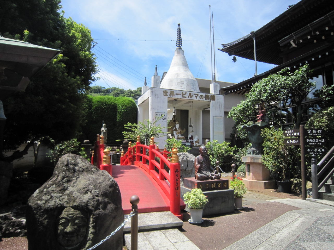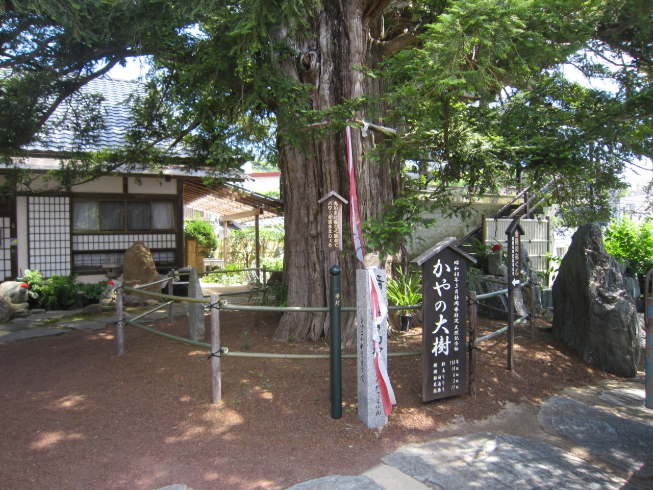 伊豆稲取駅舎を出て前の道路を稲取漁港方面に行き直ぐ右側です。お寺の案内看板が大きく出ており、鐘楼と大木が見えます。正門から入り右側にかやの大樹があり榧の寺と呼ばれているそうです。静岡県指定天然記念物の榧の木の傍にある丸い玉に触れてパワーを頂きましょうとありました。パワースポットなのでしょうか。正面に本堂、左側には世界一ビルマの佛鐘、なでぼとけや石仏等々ありました。また、宝物館、不動消炎の道、占い摩尼車の案内板がありましたがちょっと寄っただけで拝観はしませんでした。境内には見るものが多いお寺のようです。