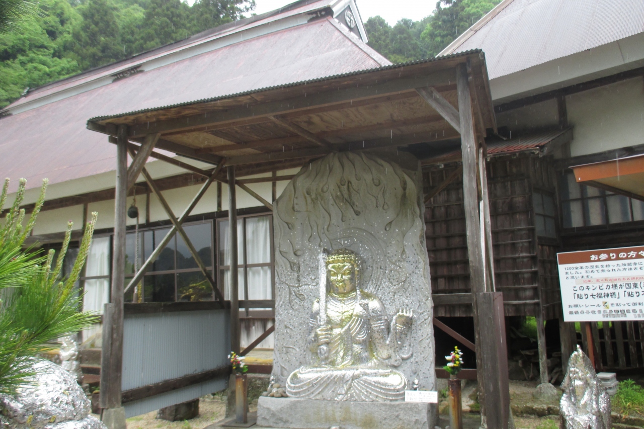 境内に入ると、石像がみんな、銀、銀、ギラギラです。不動明王も、七福神も、十二支像もみんな銀色でした。おみくじに付いている護符を貼る願掛けの一種なのだそうで、自分の願いに通じる像に護符シールを貼るのだそうです。なお、護符は金色ですが、程なく色落ちして銀色になるのだそうで、それで、銀、銀、ギラギラという訳です。このお寺の名前からも想像が付く様に、ここは子授けのご利益があるそうで、境内にある十二支像に囲まれた「熊野羊水」の中央にある龍を撫でると子宝に恵まれるそうです。