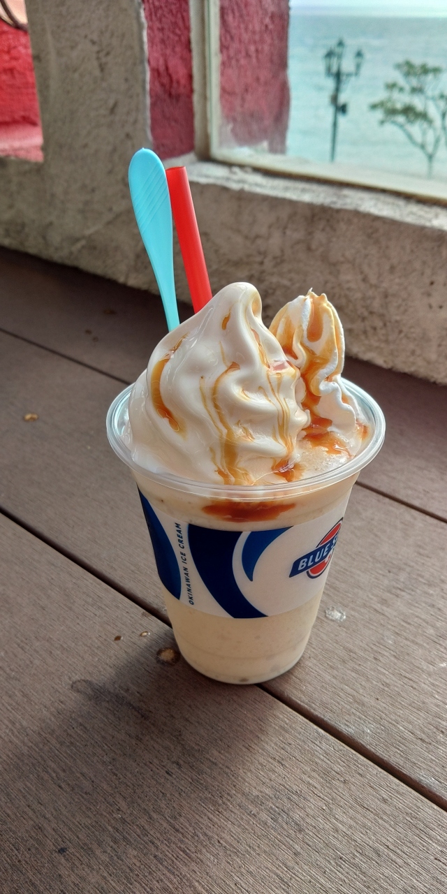 ある休日に息子を連れてドライブしました。昼食後に息子からアイスのリクエストがあったのでブルーシールへ行きました。58号沿いのお店はどこも駐車場が満車だったため、北谷のここへ来ました。(公共駐車場が広くて無料)