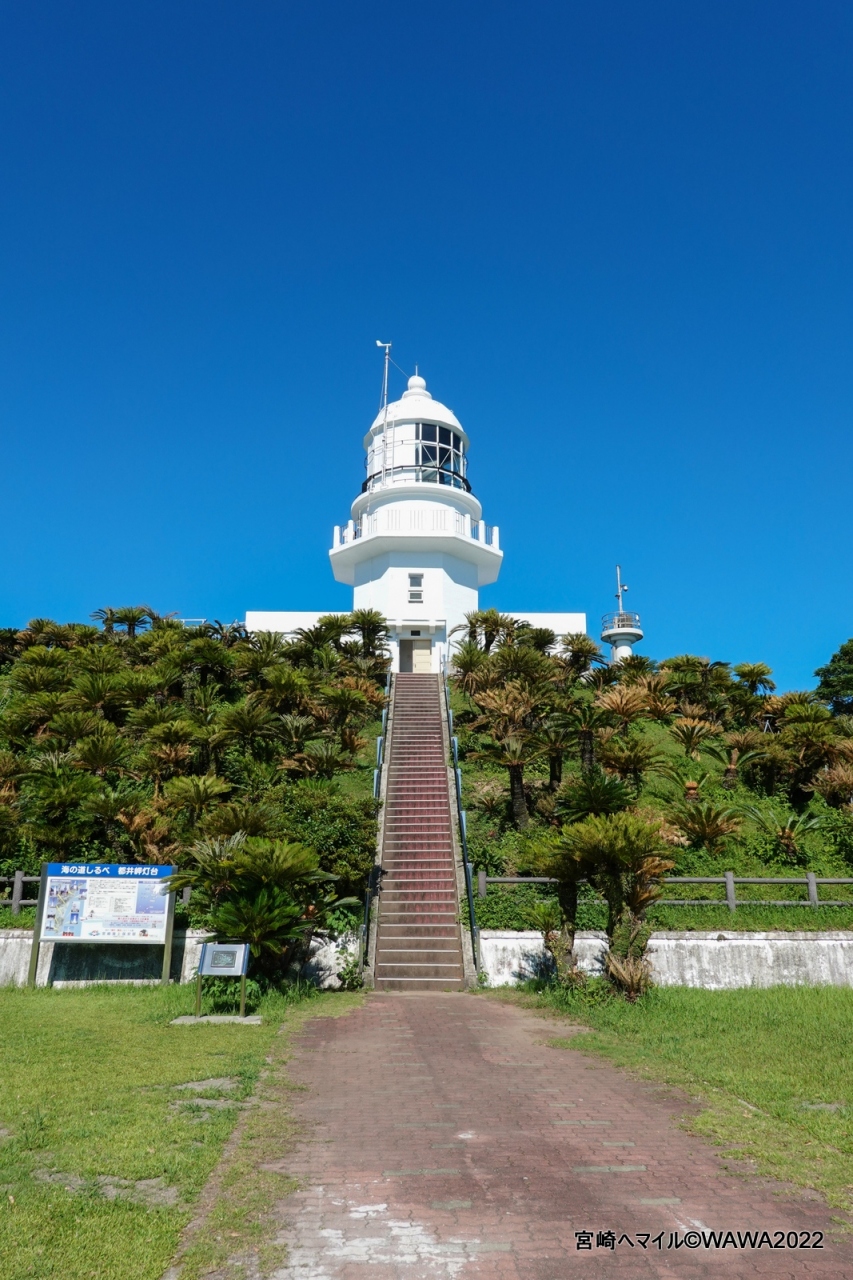 平日の朝10時に宮崎空港到着後、直ぐにレンタカーで5時間(道沿いの観光地に立ち寄りながら)かけて都井岬に到着。料金所で入場料を払って岬馬の生息する都井岬へ入場後、野生馬のいる地帯を更に奥に進んだところに都井岬灯台がありました。無料駐車場から灯台はスグでしたが、急階段が目に付いたのでお金を払っての灯台入場は見合わせました。