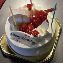 予約なしでもホールケーキがあり、蝋燭と文字入りプレートのチョコがサービスでついてきて助かりました。