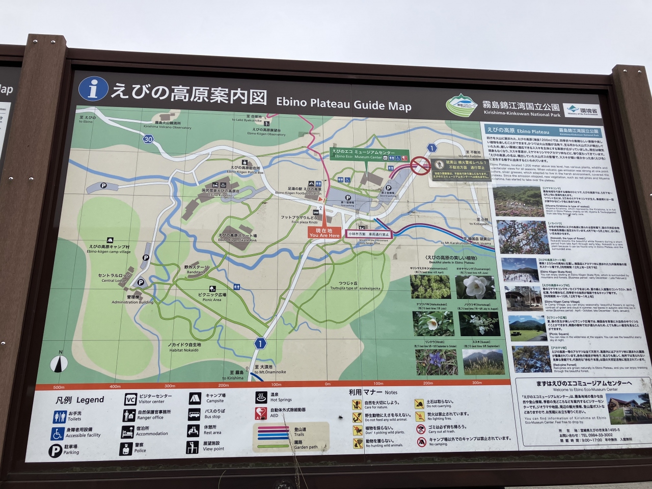 現在立ち入り禁止地区が有る高原リゾート地です。新しい足湯施設の中に観光案内所やコンビニが有るので簡単にハイキング出来ます。此処のお勧めシーズンは春のミヤマキリシマ秋の紅葉との事ですが、夏は平地よりグッと気温が下がるので気持ち良かったですよ。