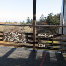 碓氷峠の、まさに群馬、長野の県境に建つ茶屋です。混んでいましたが、しばらく待つと外側の眺望の良い席に案内されました。歩き疲れて足が痛かったので、休めたのは良かったです。景色を見ながらお茶とくるみもちをいただきました。