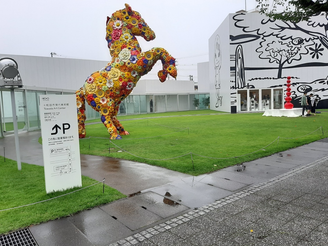 ここを見たさに青森からレンタカーで訪れた。その甲斐が十分あった。こじんまりした美術館だが、今日的なアートであふれ、ユニークさは際立っていた。特にパンフレットの表紙にもなった「スタンディング・ウーマン」には驚かされた。身長4mの巨大なおばさんがどんと立っていらしゃる。しかも髪の毛、しわ、血管などが忠実に再現され、まるでおばさんは生きているかのよう。戸惑った半面、人とは老いとは何かとちょっと考えさせられもした。館外にも草間彌生のカボチャをはじめ視覚を刺激する作品があり、十和田のビックリ箱といった趣だった。