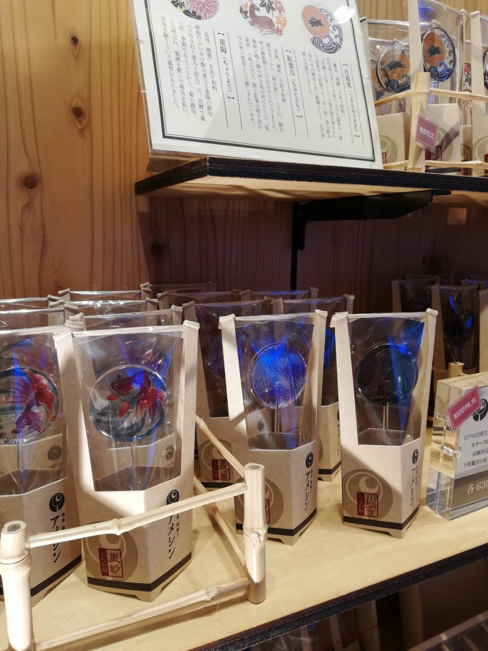 東京ソラマチに入っている飴細工のお店です。もしかしたら外国人のお客さんがターゲットのお店かもしれませんが、日本人でもとても魅了される美しい飴細工でした。