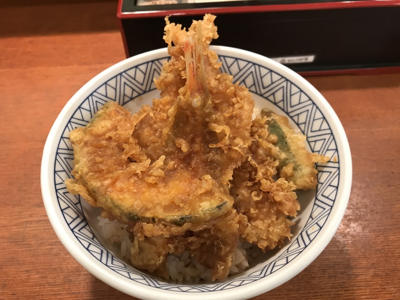 地下1Fの食品売り場に併設されているカウンター席で、温かい天丼を食べることができます。お味噌汁はつきませんが、お茶とおしんこはあります。また、海老が2本入って、値段は手頃です。ただ、油で胸焼けがしました。