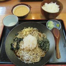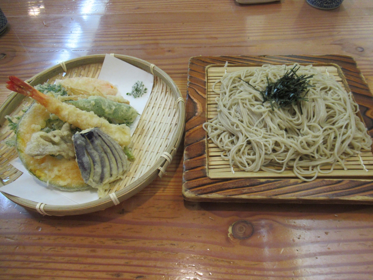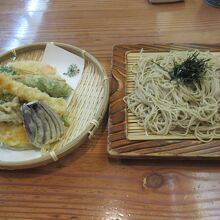 諏訪大社下社秋宮へ向かう大社通りにあります。以前本店を利用したので、今回はなれを利用しました。週末11時半過ぎに入った時、客はいませんでしたが、昼になるにつれてぽつぽつ観光客や地元の人たちが入ってきました。鬼おろしのぶっかけそばと山芋のとろろめしと天ざるそばを注文しました。かなり細い蕎麦はこしがあり美味しかったです。ぶっかけのつゆはさっぱりしていました。味が付いている山芋のとろろをご飯にかけて食べました。妻はカラッと揚がっている野菜8品と海老1本の天ぷらの天ざるを美味しいと食べていました。天ざるの薬味はわさび、ネギ、鬼おろしでした。それぞれに漬物が付いていて、美味しかったので持ち帰り用を買いました。親子三代かえし漬と名付けられているそばつゆのかえしで漬けた漬物です。木の壁に落語家たちがしたサインがあり楽しい雰囲気を作っていました。