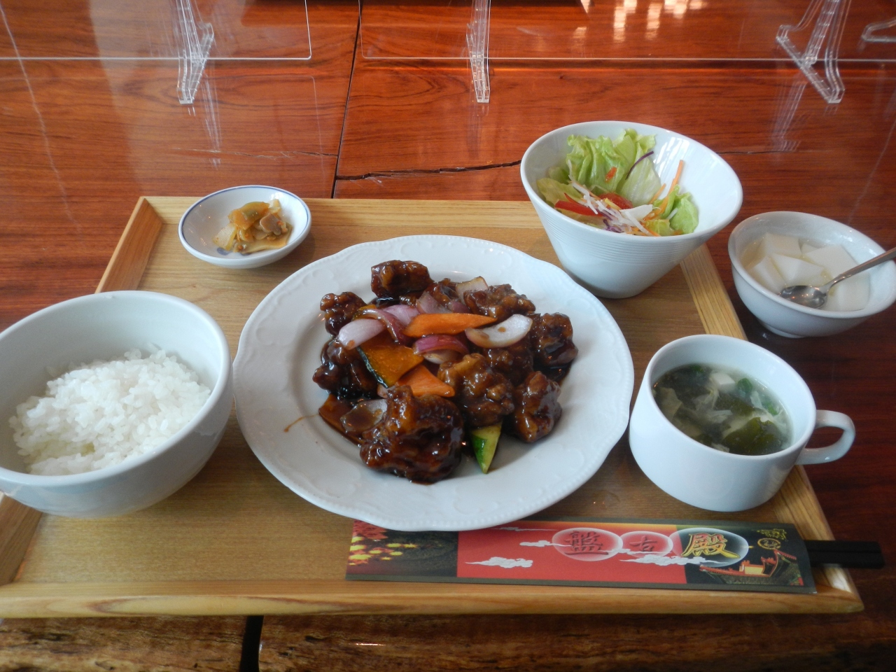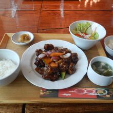 黒豚酢豚は数種類の彩り野菜と10個近くの黒豚が入っており、味もなかなか美味しかったです。