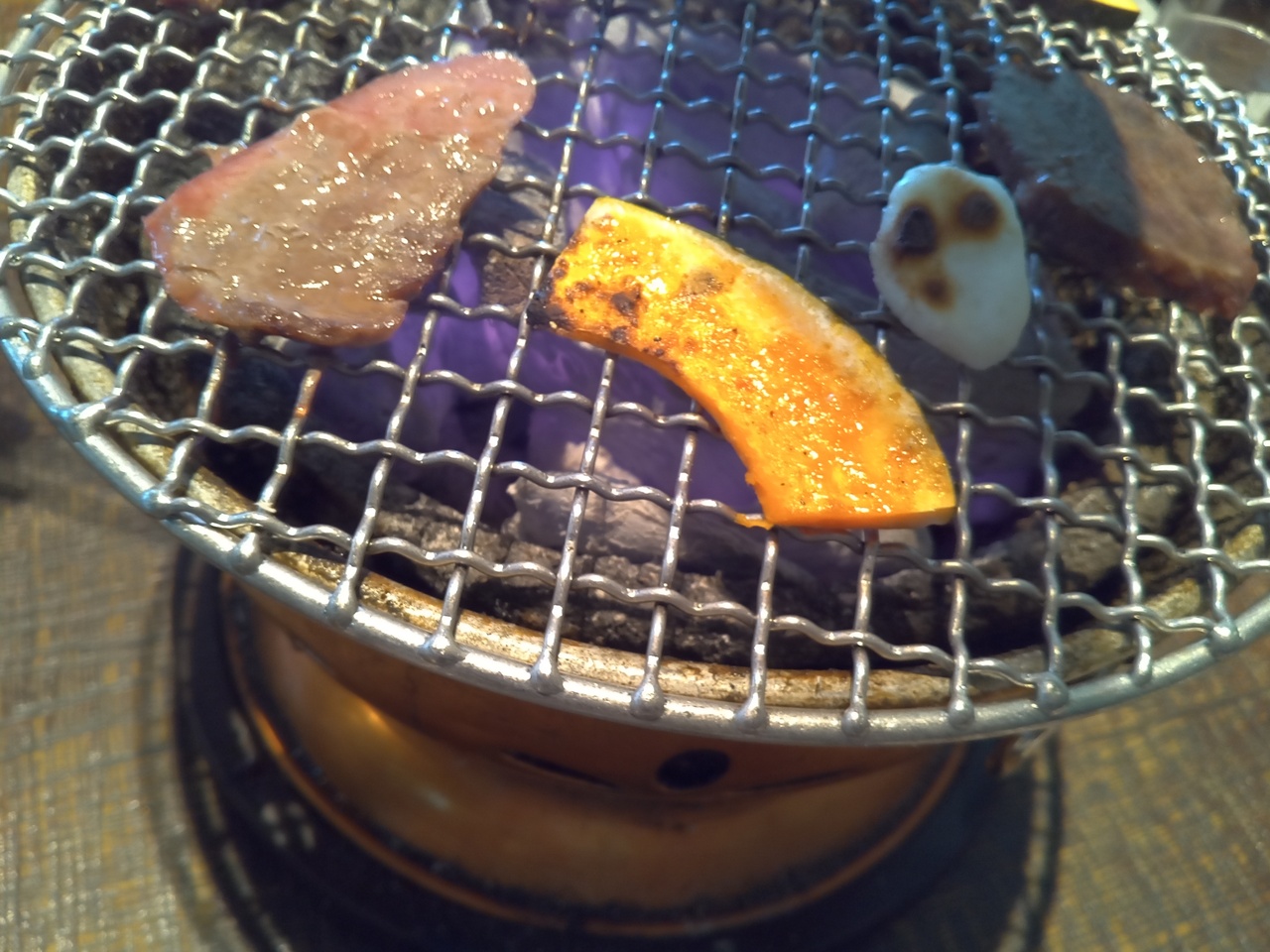 暑い日でしたが、目の前にて焼き上げる焼肉は、とても美味しく元気になりました。