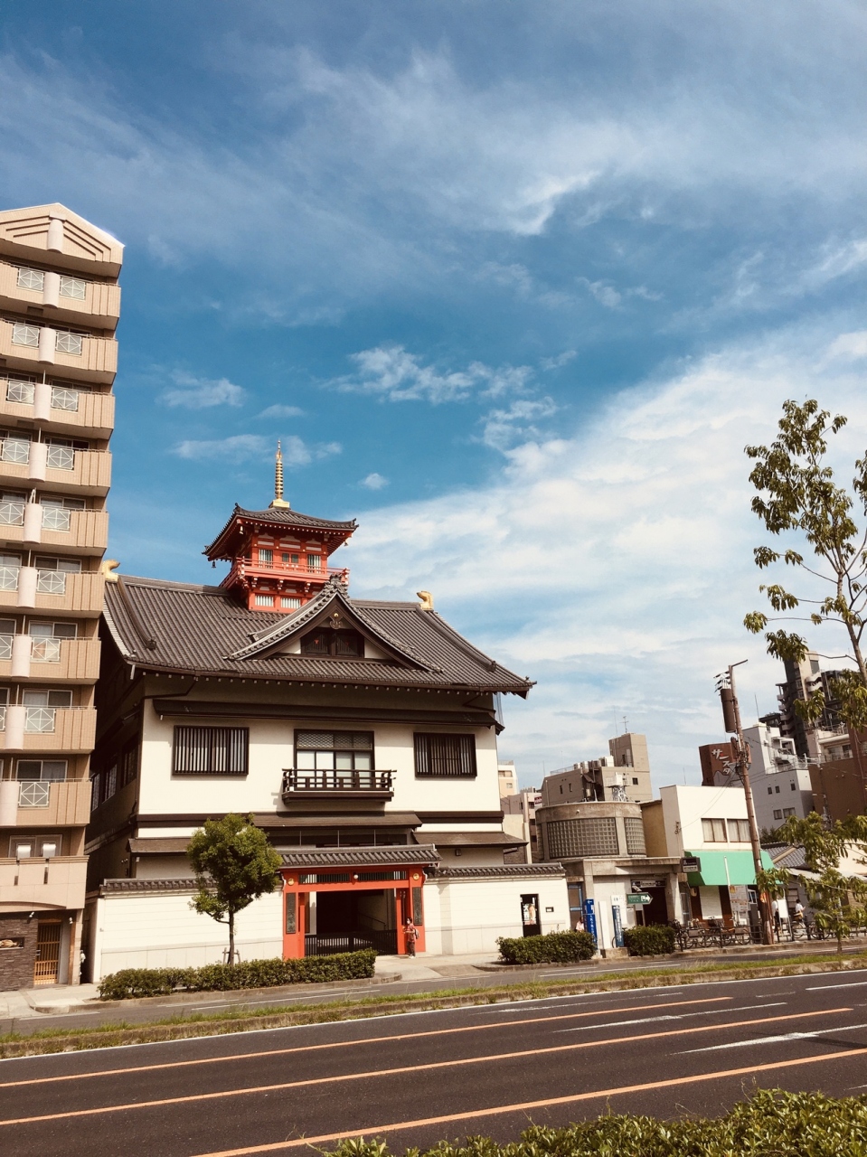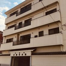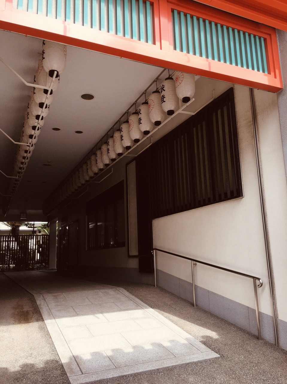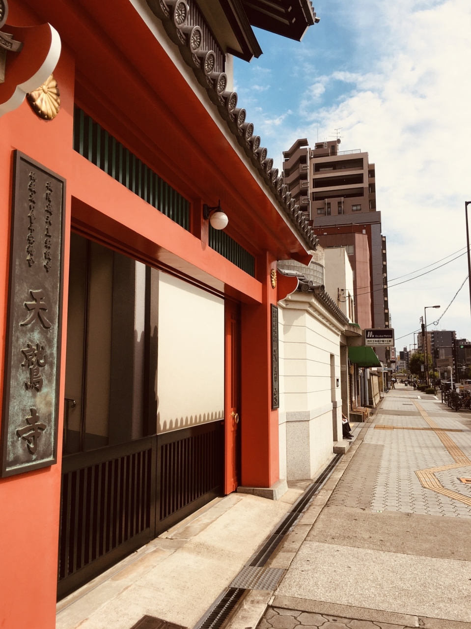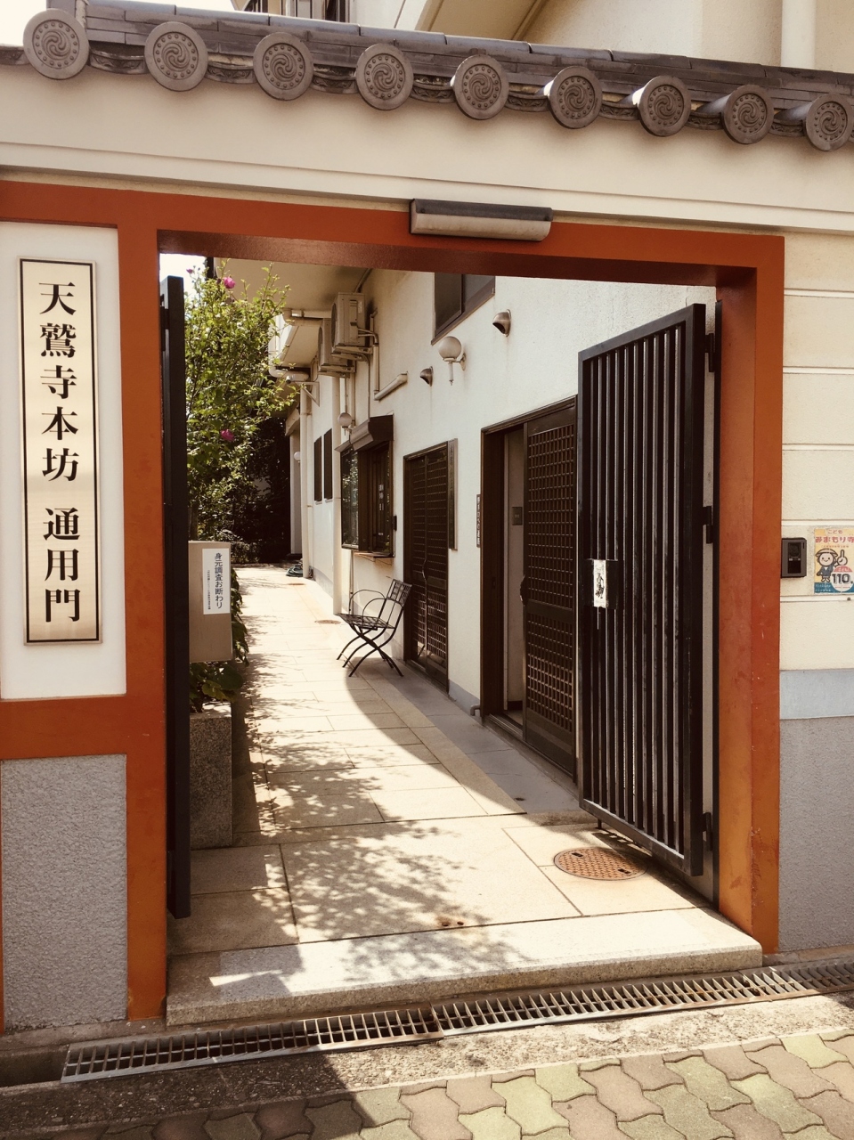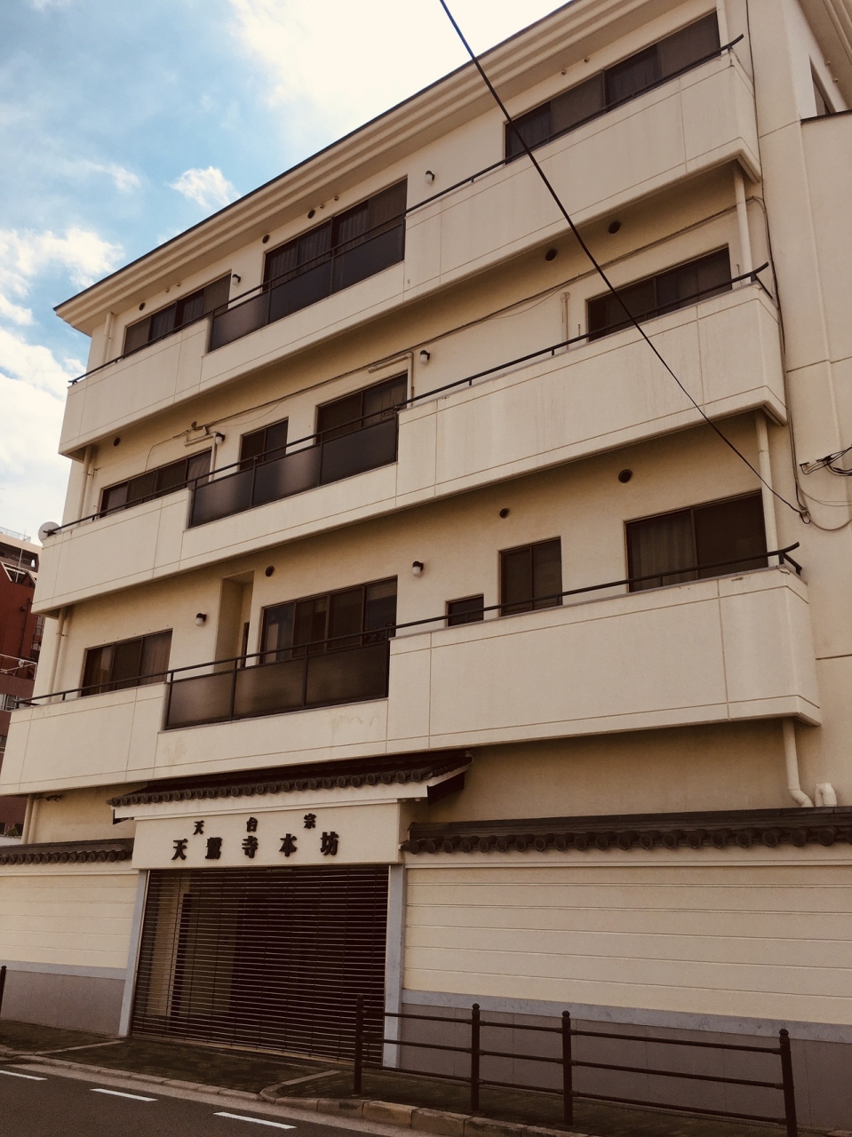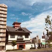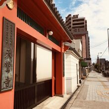 大通り沿いに面した城郭を思わせる外観で、瓦屋根と赤い色が目立っていました。裏側に行くとマンションのような建物があって、通用門がありました。お墓は道を挟んだ場所にありました。敷地内には入れないようで建物を一周しました。