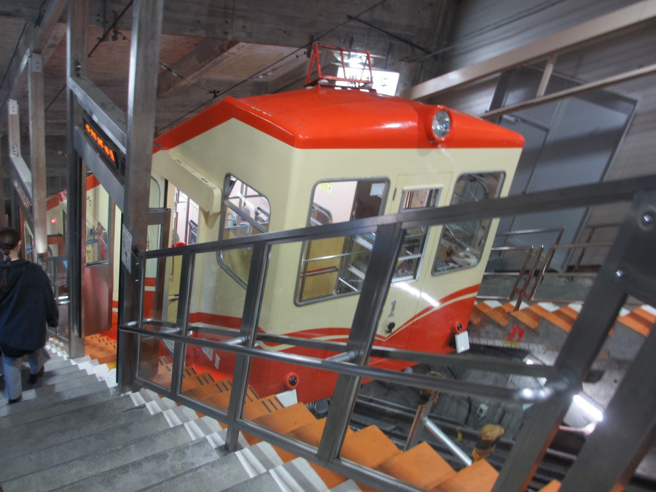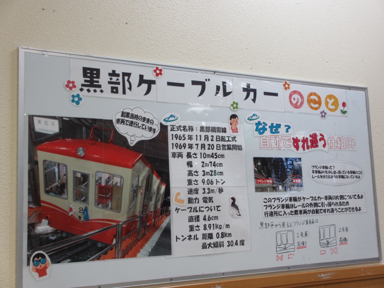 黒部平から黒部湖駅まで、こちらのケーブルカーで移動。
