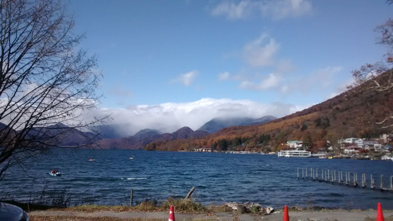 日光といえば、まず中禅寺湖が思い浮かぶと思います。添付写真のように、中禅寺湖周辺の山々にかかる真っ白な雲がめちゃきれいだなと思いました。かなりの高地なので、天気が変わりやすいのも、中禅寺湖の特徴です。