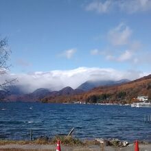 中禅寺湖周辺の山々にかかる真っ白な雲がめちゃきれい