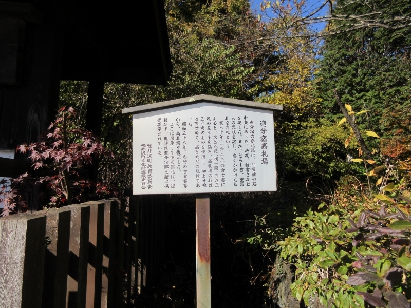 追分宿の本陣跡に復元されていました。板に書かれている文字は読めませんでしたが、説明板が掲げられているので内容を知ることができました。街道を旅する昔の人たちは、こうして公の情報を得ていたのだとわかります。