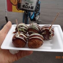自転車を借りて、大沼湖の周囲を回る前に、ここでたこ焼きを注文して食べました。