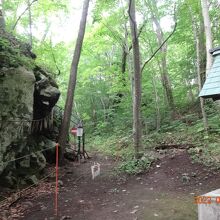 噴火を繰り返してきた駒ヶ岳の平穏や登山者の安全を祈念して建立された神社だそうです。境内には、大きな岩がありました。