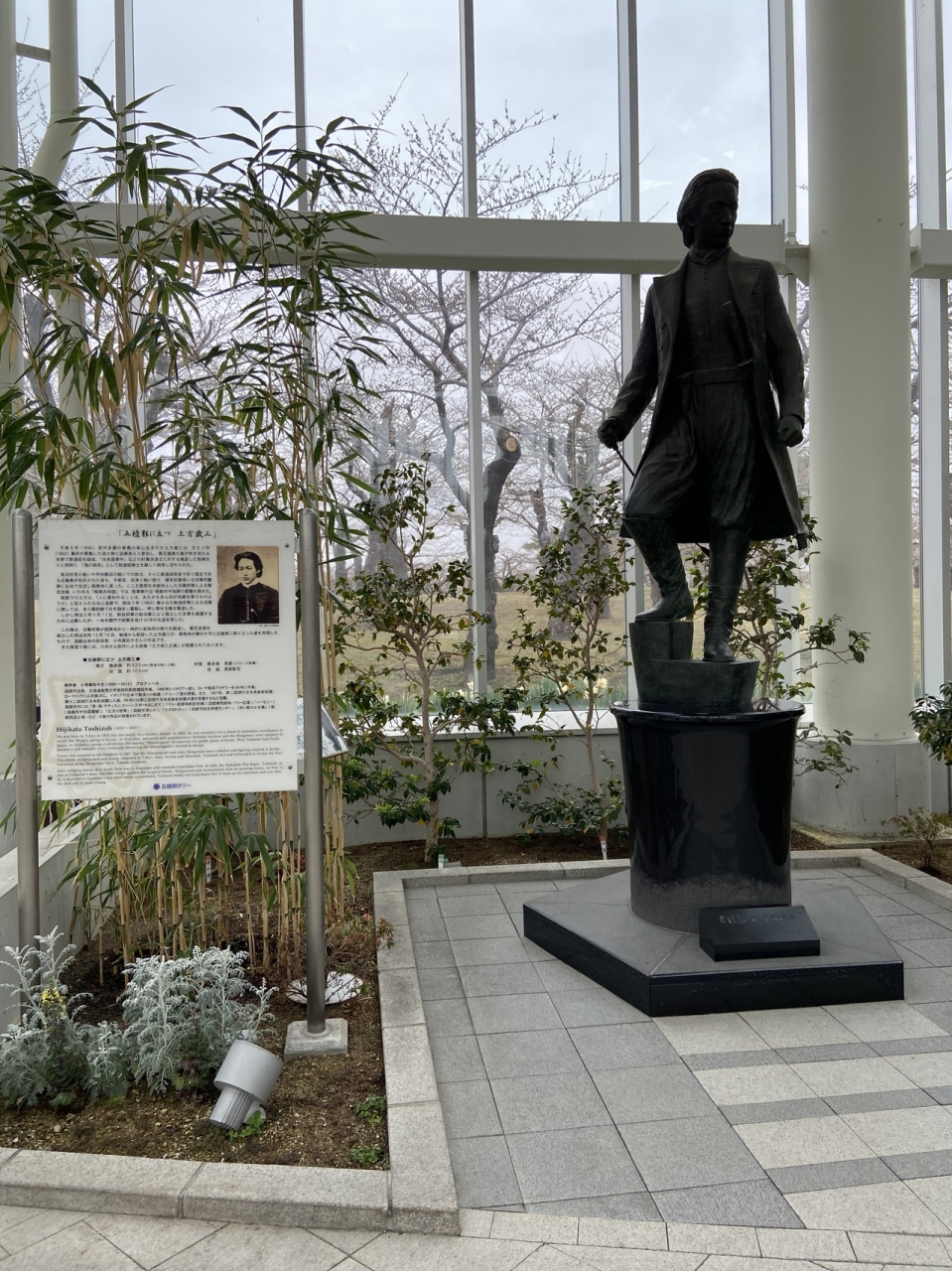 こちらへのバス移動は本数があるので便利です。ただし、バスによってバス停が違いますのでご注意を。私は五稜郭タワー・トラピスチヌシャトルバスで行きました。五稜郭公園の一角にあるので眺めは最高です。1階には土方歳三の像もあり、お土産品も土方押しでした。