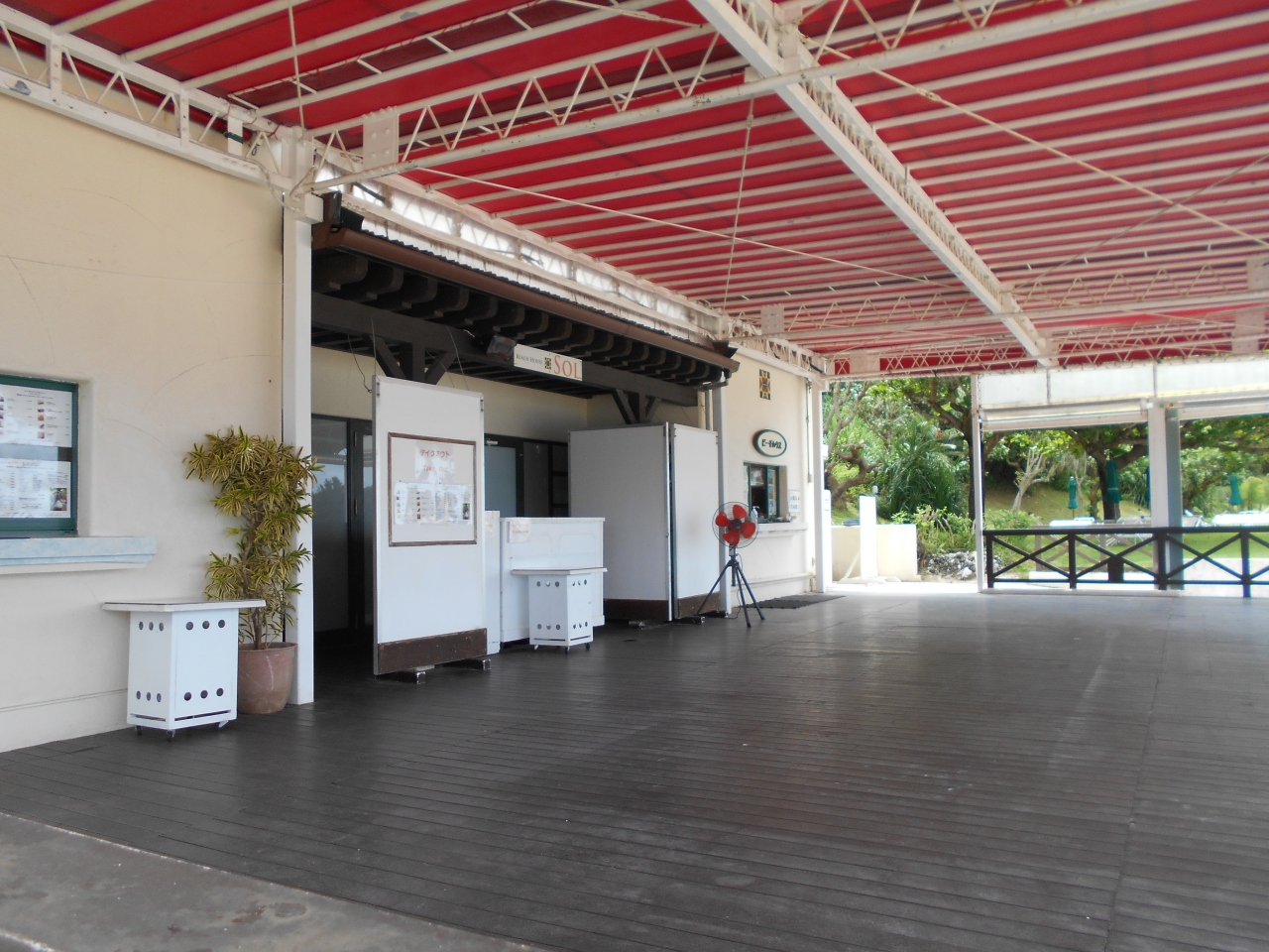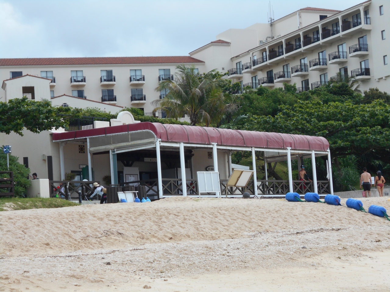 ホテル日航アリビラのプライベートビーチ・ニライビーチにあるカフェレストラン。青い海を眺めながら開放的な空間を味わえる場所です。BBQなど出来るようですが、ドリンクを飲みながら透明度の高い海で遊泳するのが良いです。