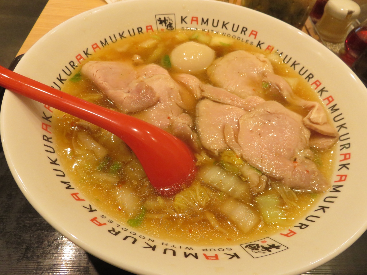 天王寺でランチとなって、旅行帰りで軽いものにしようと天王寺MIO4階の神座にしました。一般のラーメンとは全く異なるものですが、チャーシューの質・量良く、野菜がたくさん煮込まれているので美味しいです。煮卵もまあまあでした。