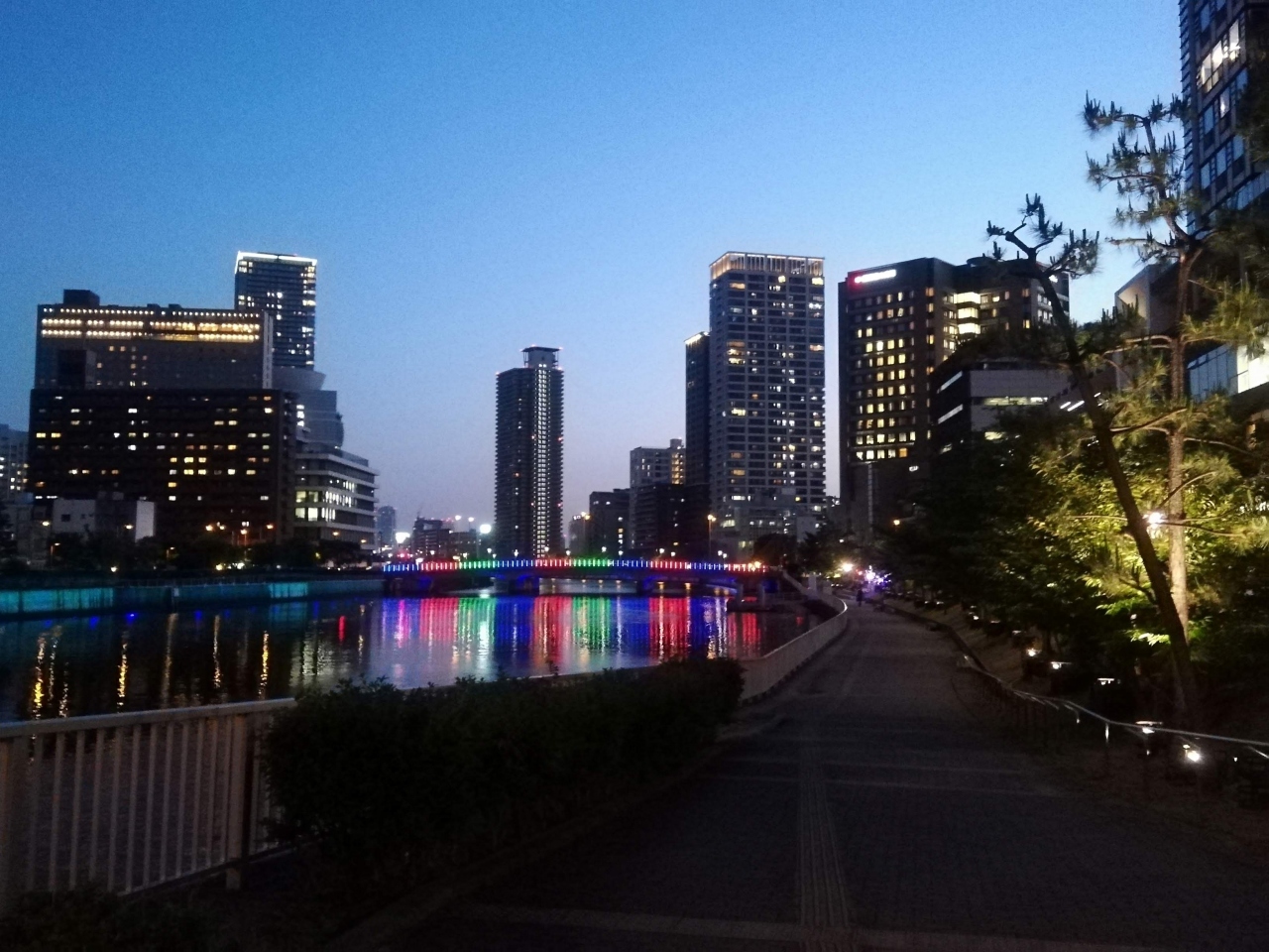 たまたま夜通りかかったので、写真を撮りました。ライトアップの色合いが派手だったので驚きましたが、綺麗でした。