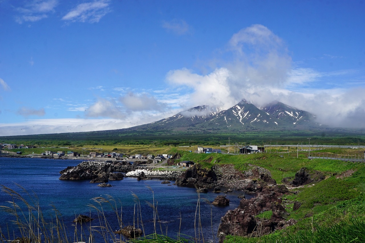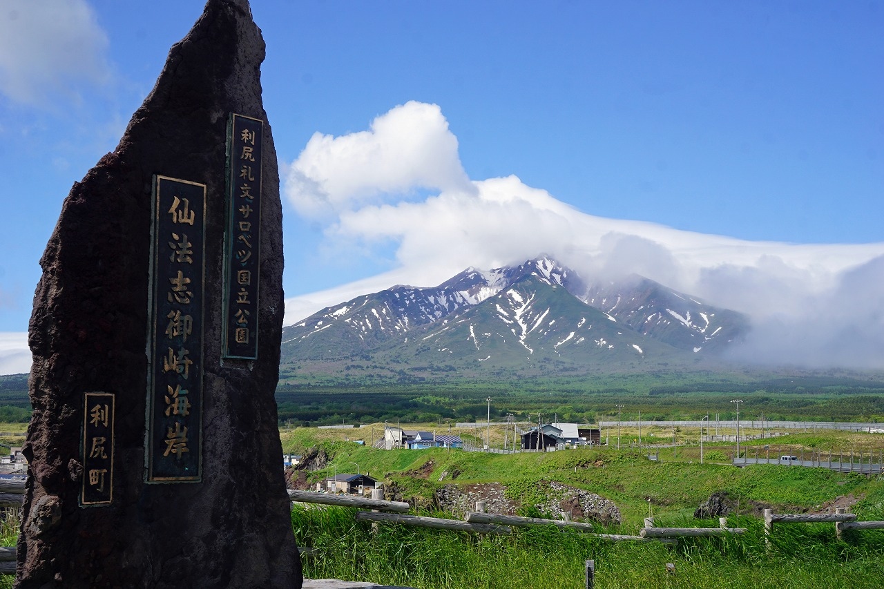 利尻島と礼文島とオロロンラインとサロベツ原野から見た利尻富士。