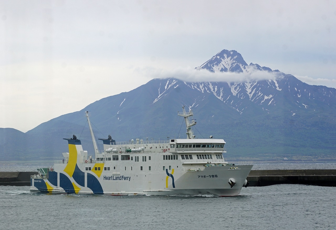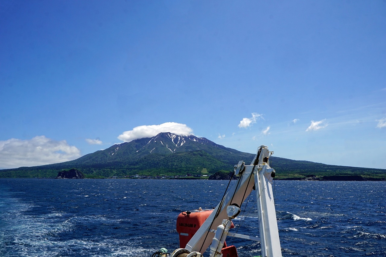 稚内から利尻島へ行くフェリーの船内で初めて利尻富士を見て、島内を周遊する間はずっと見ることが出来ました。礼文島へ向かうフェリーからも美しい姿を眺め、礼文島の東海岸ではその姿をずっと見られます。さらにノシャップ岬の沖に姿を表し、オロロンラインをずっと南下しても追いかけてくるように見えます。その姿は最後はサロベツ原野まで着いてきました。4日間ずっと一緒に旅していたようで5日目に曇ってしまったオロロンラインでは少し寂しい気分になりました。どこから見ても美しい意ですが、六に海上に浮かぶ姿は幻想的です。