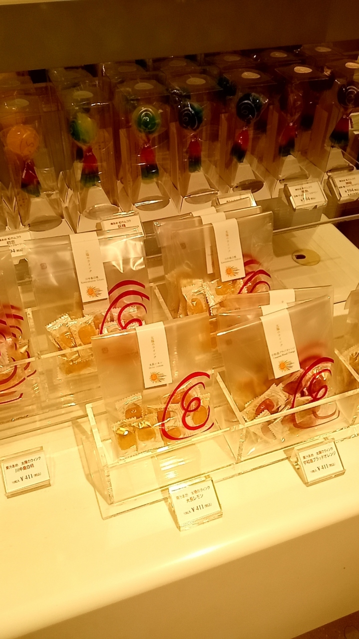 東京 銀座の銀座三越 B2Fに出店している「あめや えいたろう 銀座三越店」では、「果汁あめ 太陽のウインク」という、ブランドフルーツを使用したあめが販売されています。厳選された素材を使用し、あめのネーミングもとてもお洒落です。