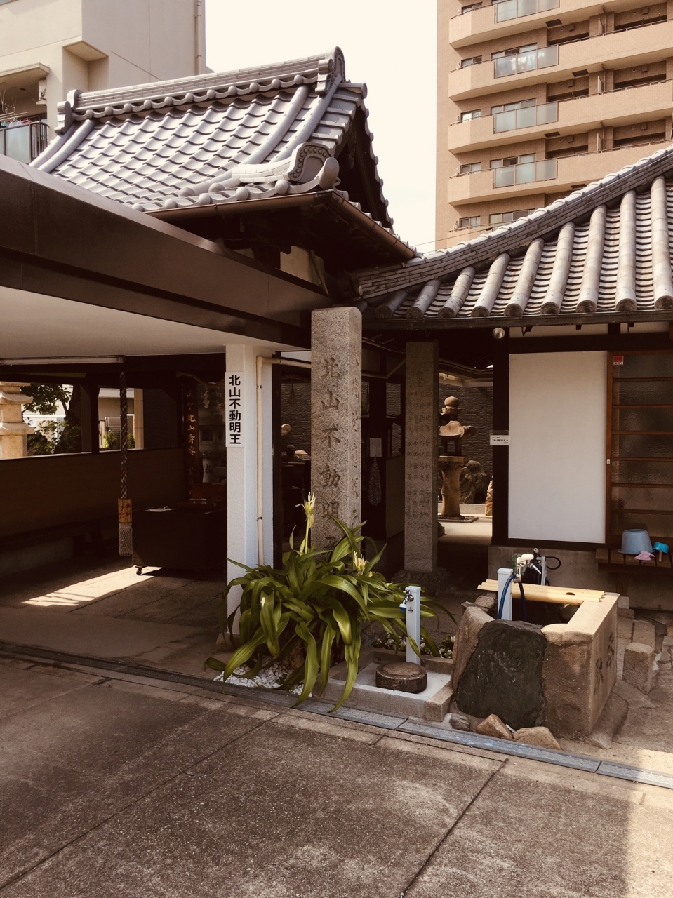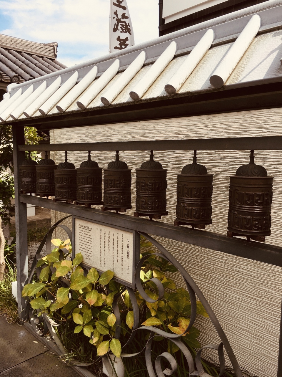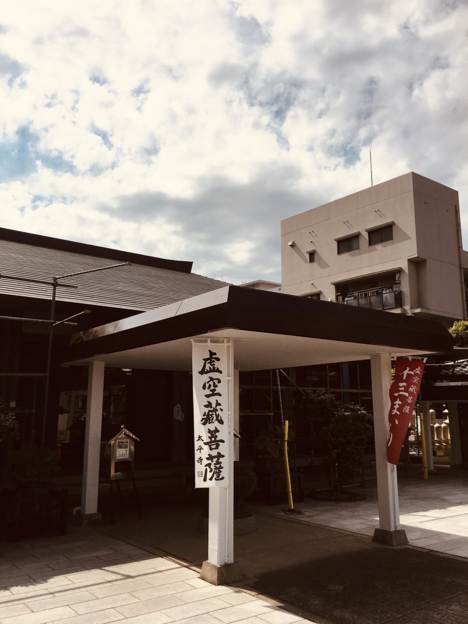 大通りに面した寺で、門前には十三まいりの赤い旗が靡いていました。境内入ると左側にはネパールから送られたマニ車と言う、鐘のようなものがいくつか展示してありました。筆塚、針塚等があり、奥には、虚空蔵菩薩があります。