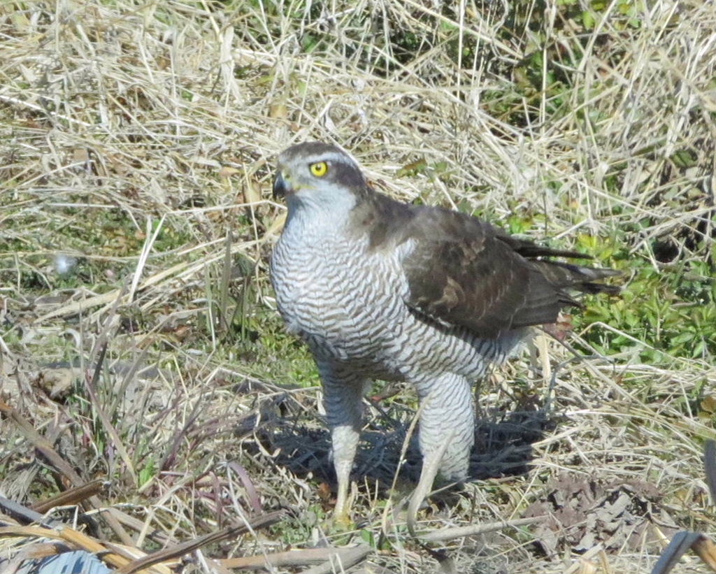 オオタカ(蒼鷹)は、タカ目タカ科の野鳥です。名前は大きさからではなく、羽の色が青みがかった灰色をした鷹を意味する「蒼鷹(アオタカ)」に由来するそうです。