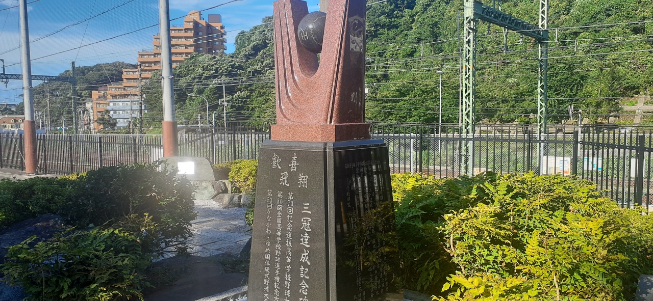 校門のそばには横浜高校がエース松坂の時に甲子園大会で優勝したときの記念碑がありました。