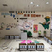 「キタノザウルス」の 顔出しパネル(顔ハメ看板) や 電車や線路の 飾りつけも ありました。