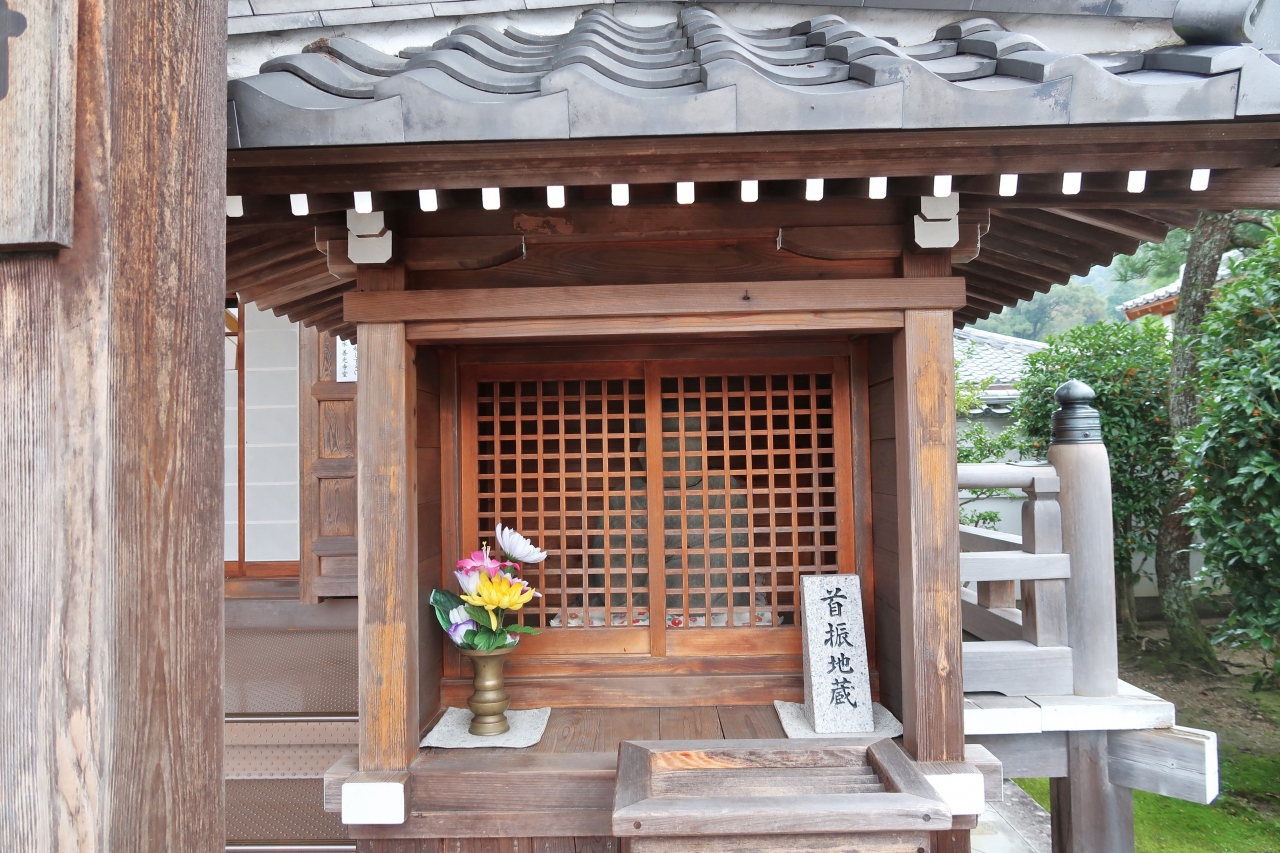 清水寺の入り口前にある善光寺の右側に置かれているお地蔵さまです。首が左右に回るという不思議なお地蔵さまだとの噂を耳にしたので、ぜひとも実際にトライしたかったのですが、コロナ禍の接触禁止条項が厳格に守られていて、格子戸の向こうに鎮座するシルエットしか拝見できず、残念な結果に終わりました。