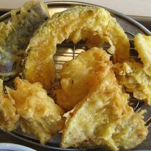 JR大阪駅前の大阪駅前第3ビル地下2階にある天婦羅の専門店です。海老や穴子、豚、鶏、野菜などを天婦羅にした定食と丼がメニューの中心です。“鶏天定食”に豚天を追加トッピングしたものを頂きました。鶏天の他に、イカや白身、ナスなど夏野菜の天婦羅と赤だしなどが付いたボリュームたっぷりの定食で、サクサク揚げたての天婦羅は美味しかったです。天婦羅と言えば高級店というイメージがありますが、お安く美味しく頂ける「えびのや」さんは庶民的で良いですね。