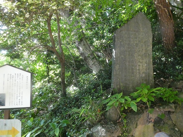 横須賀市の浦賀地区にある明神山。ふもとに東叶神社がある小高い丘ですが、勝海舟断食の碑という案内を見かけました。階段を登り頂上付近に行くと、鬱蒼とした森の中に碑がありました。碑文によると、1860年、勝海舟が咸臨丸で日米横断に成功した際、出発前に神社そばの井戸で水垢離し、頂上付近で断食して航海の無事を祈ったようです。地味な碑なんですけどね。
