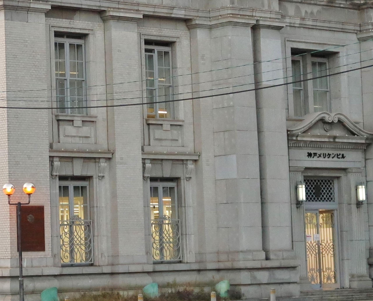 メリケン波止場前、最初のアメリカ領事館の跡地に大正7年に建築された旧日本郵船神戸支店です。神戸旧居留地のレトロビル巡りの最後に訪れました。外壁は地味な灰色ですが、正面玄関3階の半円アーチとその脇の丸いレリーフ装飾、アール・ヌーヴォー風の窓のグリル装飾などに、神戸空襲前の華やかだったであろうレトロビルの面影を偲ぶことができました。