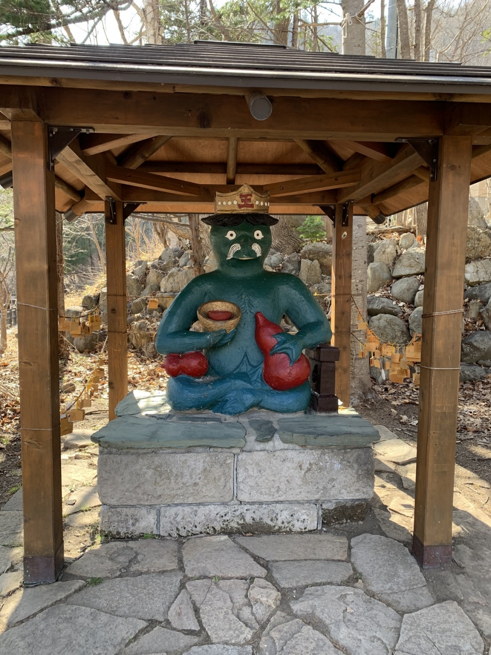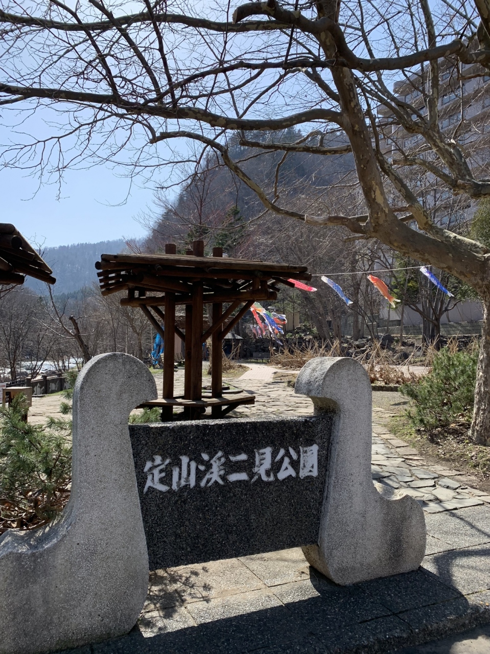 ホテルチェックインまで少し時間があったので散歩していて見つけました。温泉街の奥の方にありひっそりしていました。目を引いたのはかっぱ大王の像です。お酒をかかえていてユニークでした。二見、定山の道の起点にもなっていて散策路が整備されていました。
