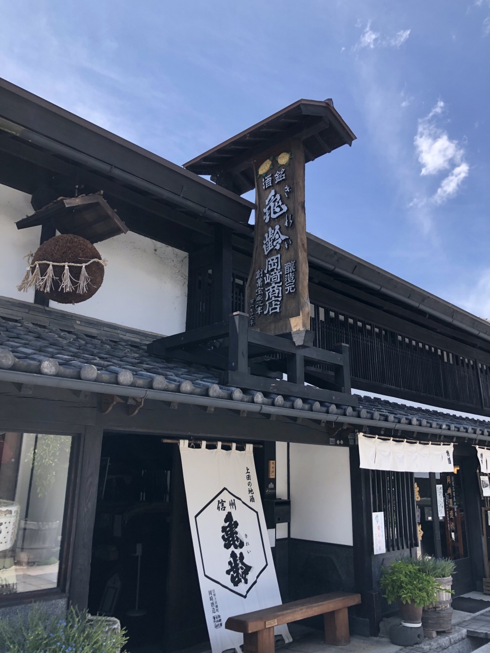 旧北国街道の柳町にある酒造です。江戸時代から続く酒造で、創業は350年以上にもなるそうです。建物も伝統的なもので、柳町の見どころになっている古い建築様式の特徴が見られました。軒先につり下げられている杉玉にも、酒造らしい情緒を感じます。