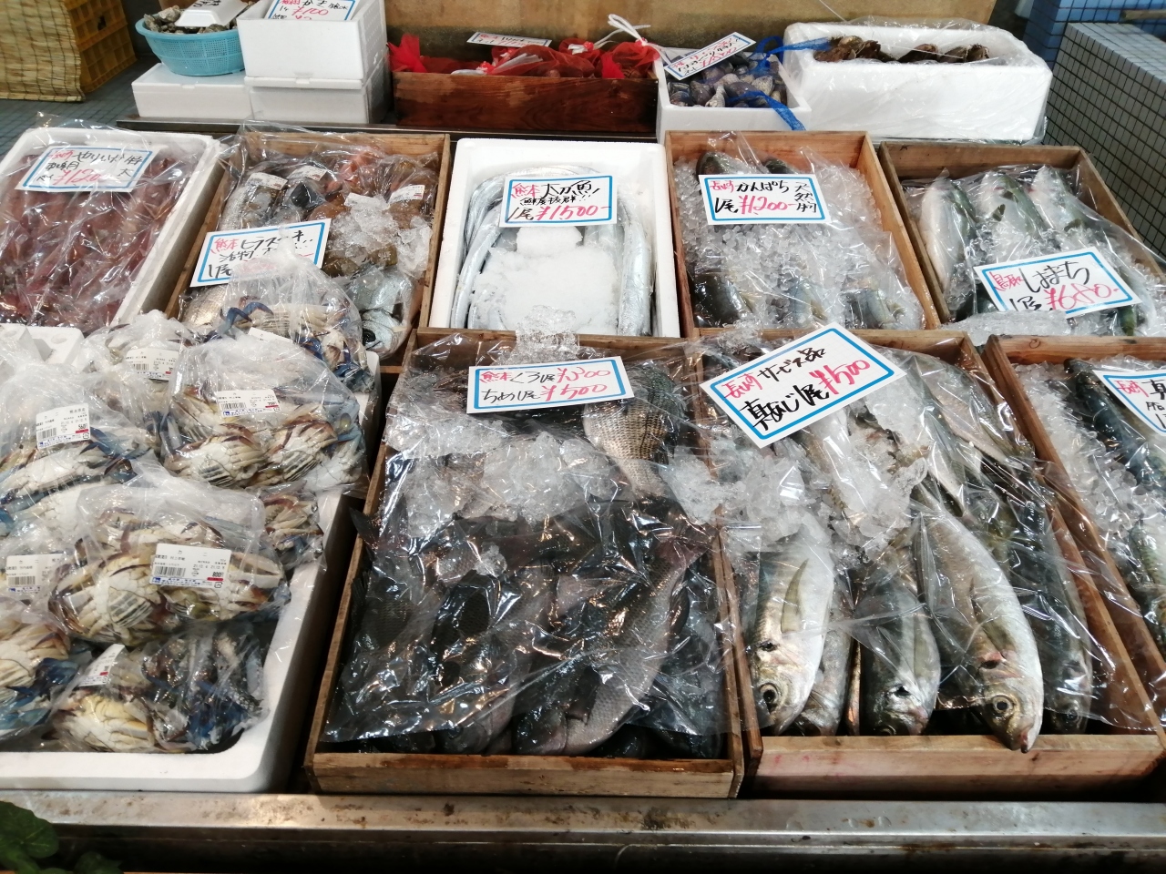 物販コーナーに行ったら、まるで鮮魚店のように魚が並べられていてびっくり。