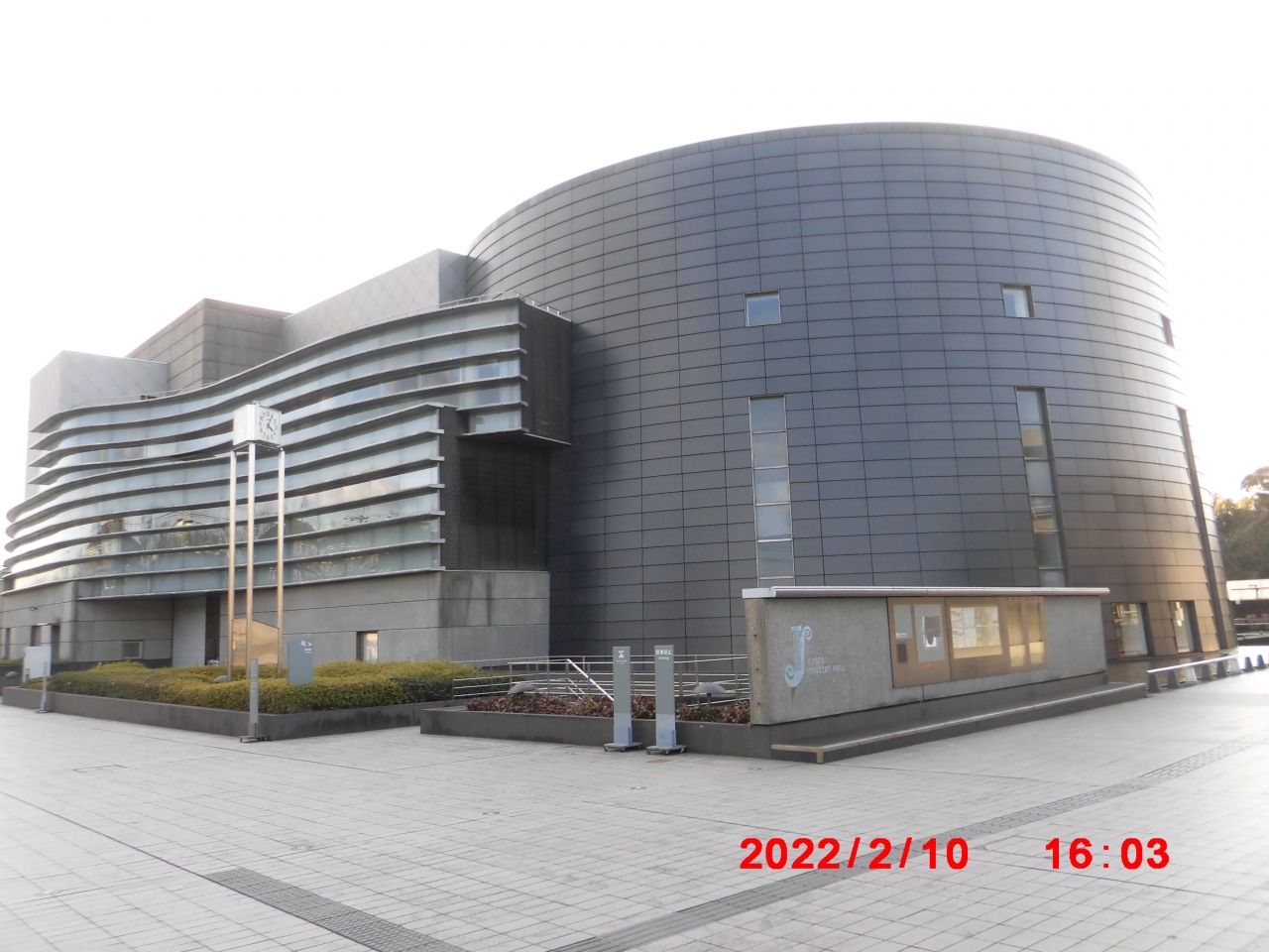 京都市観光で立ち寄りました。京都コンサートホールは、京都府立植物園の東にある立派な建物でした。円筒形の建物はエントランスホールやスロープになっており、3階に部分は小ホールになっています。メインの大ホールは長方形で3階までの吹き抜けになっています。