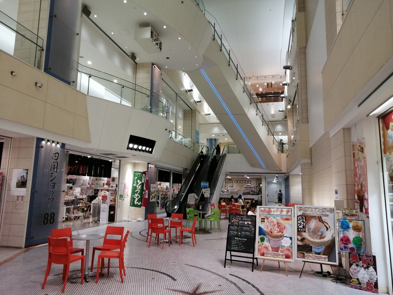 高松シンボルタワーのフロア棟1~3階に入っているレストラン、ショッピングエリアです。各種飲食店揃ってます。1階の「四国ショップ88」には四国4県の銘菓、名産品が揃っており、お土産を買うにはぴったりの場所です。