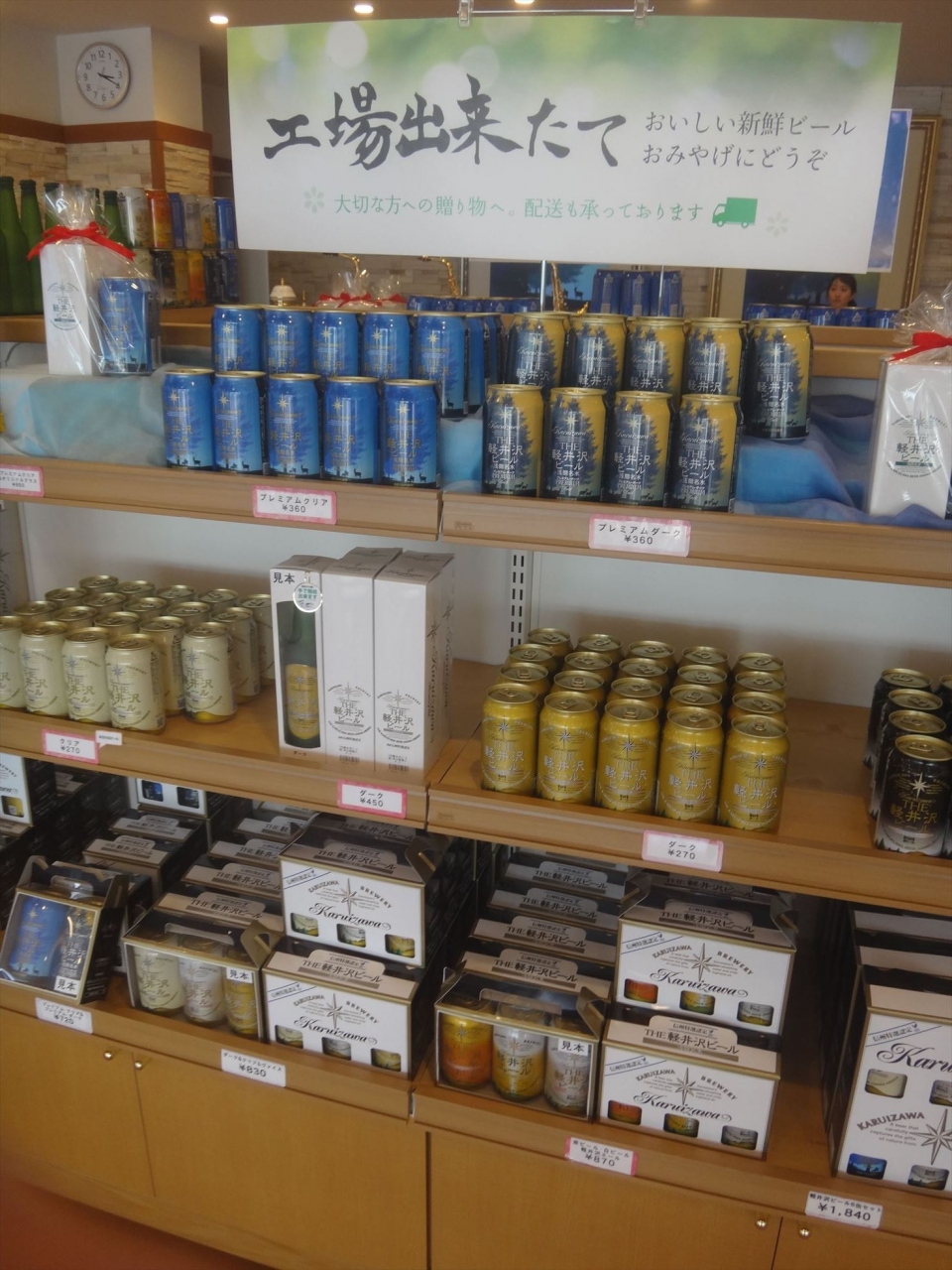 地元ブランドの軽井沢ビールの製造工場ですが、工場見学ができて、さらに見学後にビールを2本もらえるというか、1本はその場で飲ませてもらえて、お土産にもう1本という形なのですが、その場で飲めるほうも場所がきれいで雰囲気がよく、気持ちよく飲めるので気分がいいです。工場の入口をはいったところに千住博の巨大な絵が飾ってありますが、かなりの大きさなので圧倒的な迫力があります。