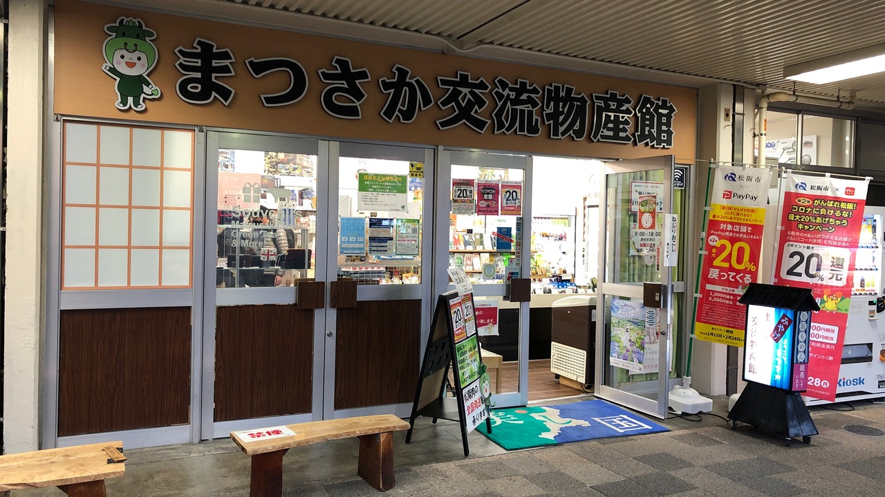 松阪駅の中にある土産屋さんです。小さなスペースですが、松阪土産だけでなく、三重県各地の土産が揃っています。伊勢茶の種類が豊富でした。2022年2月は、PayPayやd払いだと、20%お得になるキャンペーンが行われていました。