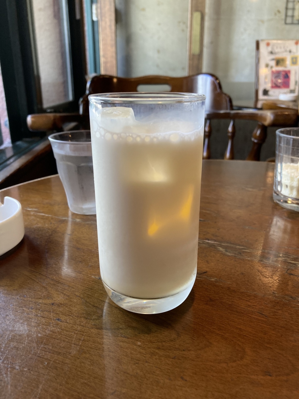 シチュウが有名なのですが、季節は夏だったので、そちらは冬に楽しむことにして今回は、ナポリタンとパワードリンク。甘めのケチャップで炒められた、具は少なめ、少しアルデンテのナポリタンは、玉子焼きが上に乗り、横に堂々とフランクフルト、ポテサラ、さらに酸味の効いたドレッシングがかかっている千切りキャベツ。見た感じだけでも昭和の喫茶店のメニュー。パワードリンクは、オレンジコンク、レモン、牛乳からつくるもの。爽やかな味は、夏の季節にピッタリ。