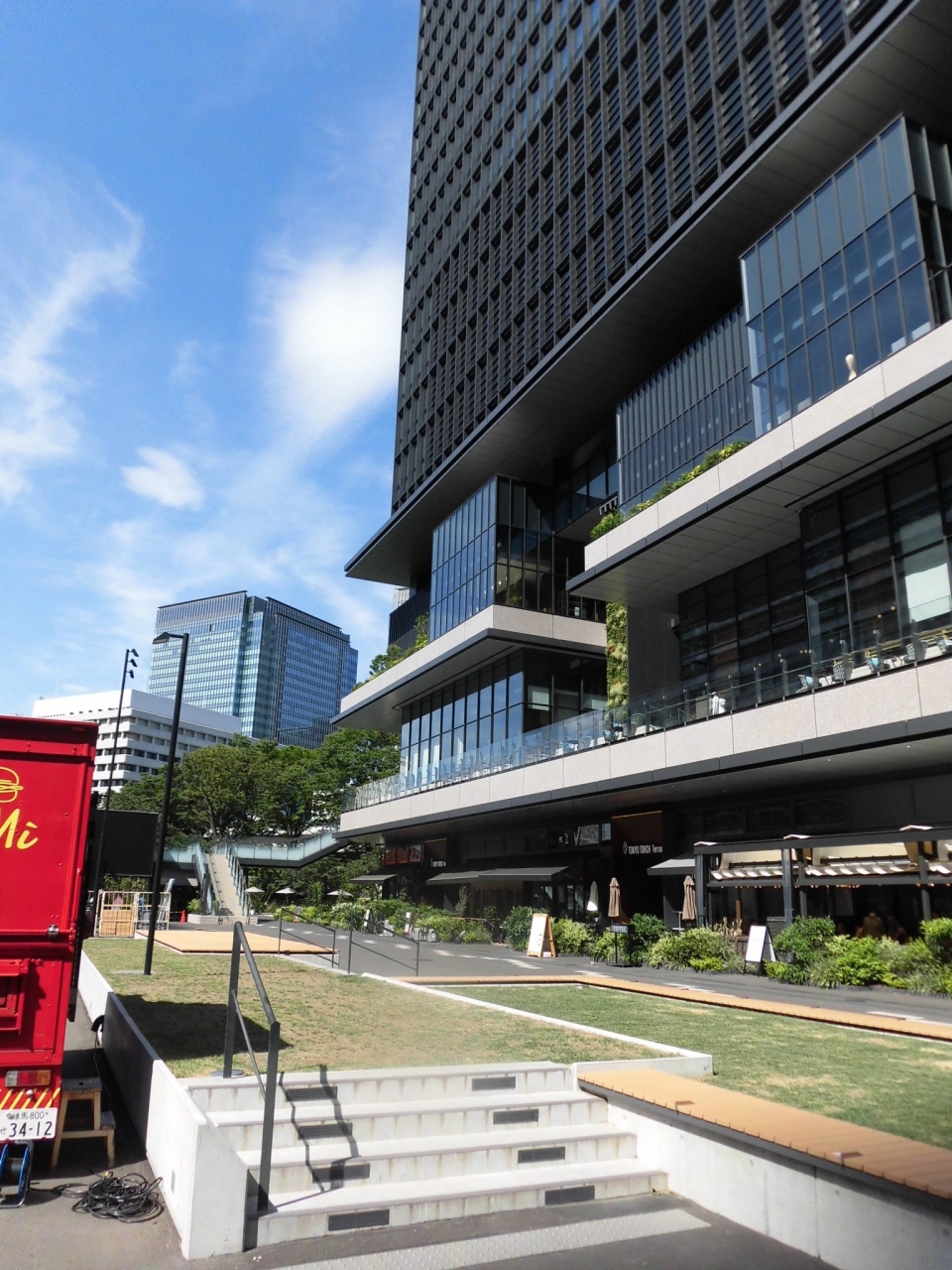 大手町近辺を散策していた時に、再開発によって建てられたビルの間が、TOKYO TORCH PARKになっていました。イベント開催なども可能で、かなり広くてゆったりとしたスペースでした。遊びに来た人の憩いの場所になっていると思いました。