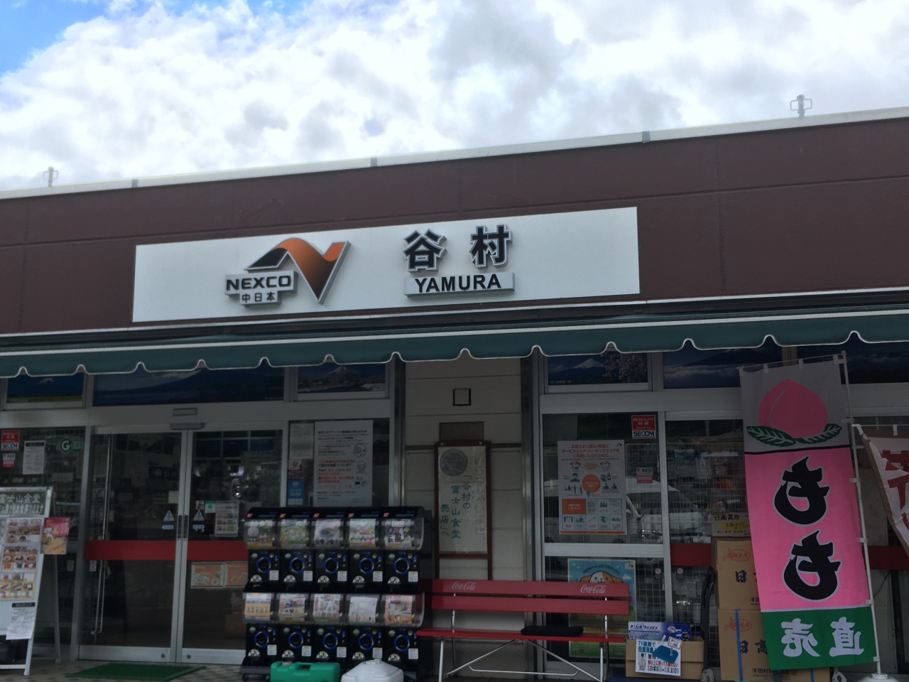 谷村(やむら)パーキングエリアはこじんまりとしたパーキングエリアで、河口湖の近くにありました。トイレはもちろんキレイで、フードコートや売店も小さめながらありました。バスツアーのトイレ休憩で寄ったのですが、こちらの売店には、とても大きく立派な桃が4個で1000円で売っていて、迷いながらも買わずに帰ってしまいました。その後、何ヶ所かで桃の販売を見かけましたが、結局、ここの桃が一番立派で安かったようで、少し後悔しています。